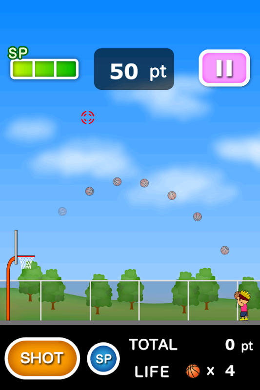 トニーくんがロングシュートを決めるバスケットアクションゲームです。