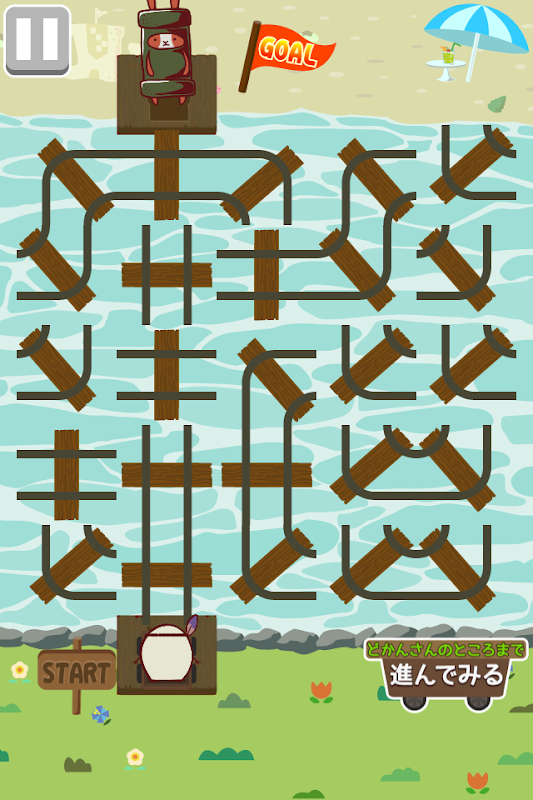 カリブ(タマゴ風のキャラ)をどかんさん(土管を着たウサギ)まで導けばGOAL!