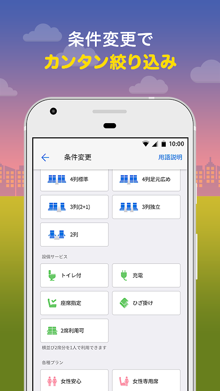 您可以根据时间和设备来缩小范围,例如指定出发/到达时间或想舒适地坐在一个座位上。