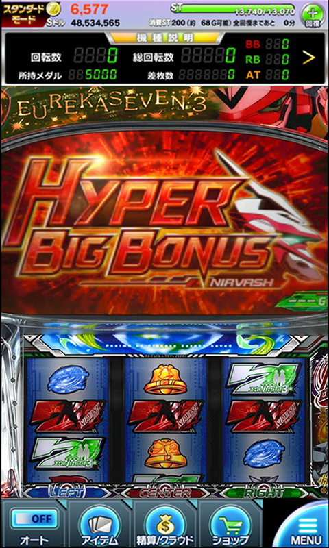 …ゲーム数、獲得枚数、BONUS数などに応じて経験値を稼ぎレベルや段位を上げていくアプリならではのやり込み要素。ミッションの進み具合で[インテリジェンスオート]機能も開放!さらにアプリをする時間がない時も自動おまかせプレイが可能となる[クラウドオート]機能も!!