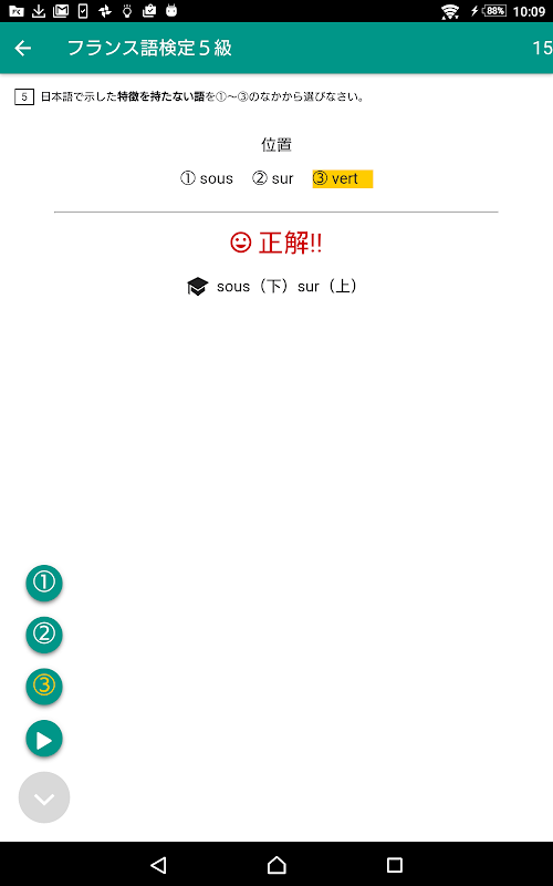 フランス語検定5級(仏検5級)の問題集アプリです。合格のために落とせない1,2,5の設問をトレーニングできます。実際の試験の問題用紙と近い表記にこだわってみました。雰囲気も含めて対策に役に立つと思います。