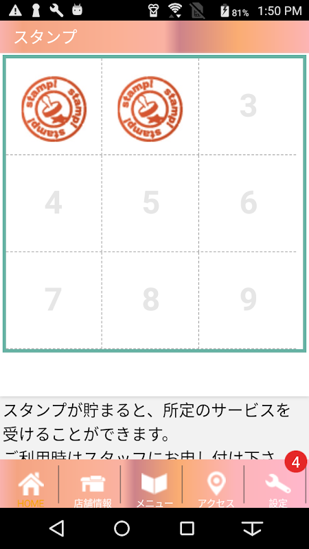 ●スタンプを集めて、商品やサービスなどに交換する事ができます。