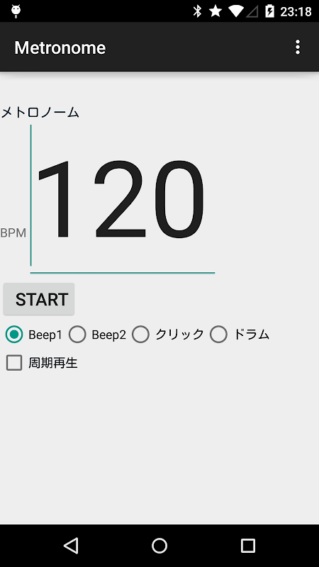 生のメトロノームのクリック音やドラム音、楽器演奏中も聴きやすい大音量のビープ音を備えたシンプルなメトロノーム・アプリです。