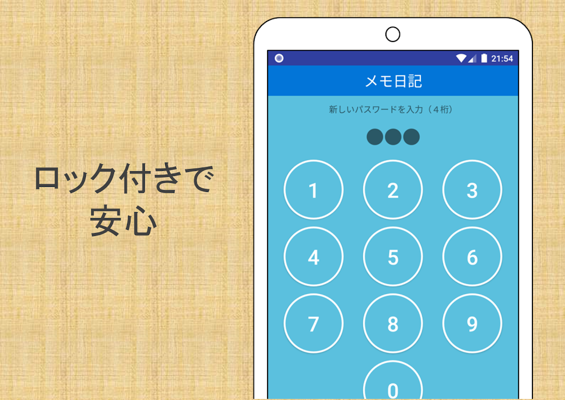 这是一个简单的带有密码的日记应用程序。您还可以附加图像、输入象形图和输入语音。从日历中选择一个日期并写下便笺或日记。
