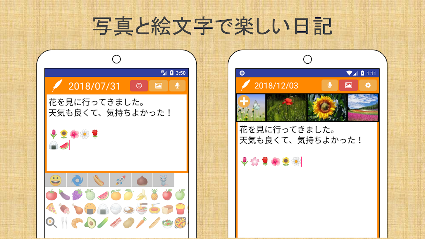 让我们使用照片附件和象形图的简单输入功能愉快地记录记忆。