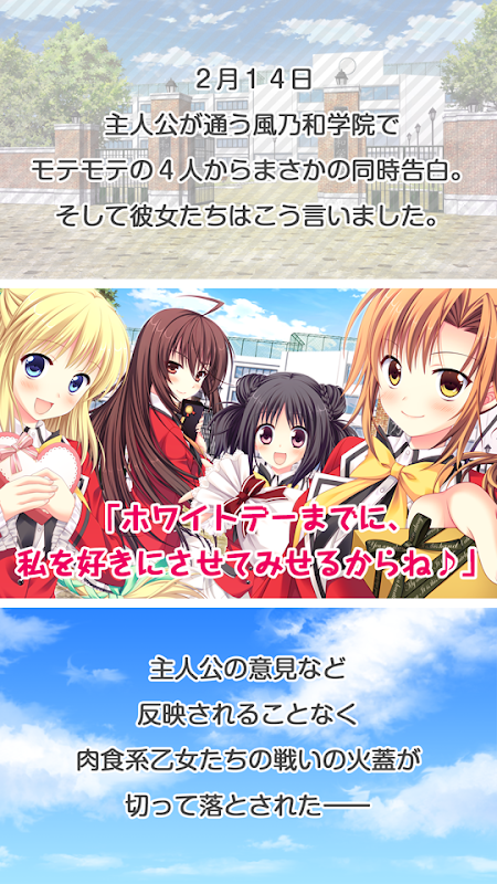 这是一款视觉小说冒险游戏(美少女游戏/女孩游戏),您可以在其中与美丽的女孩角色享受浪漫。