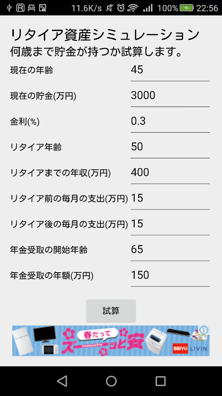 リタイア資産シミュレーション