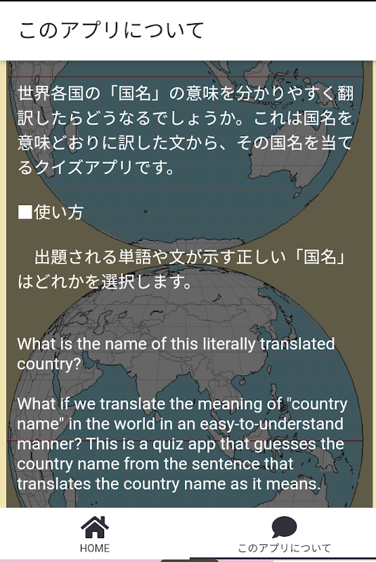 如果我们用通俗易懂的方式翻译每个国家“国名”的含义会怎样?这是一个测验应用程序,可以从翻译国家名称的句子中猜测国家名称。