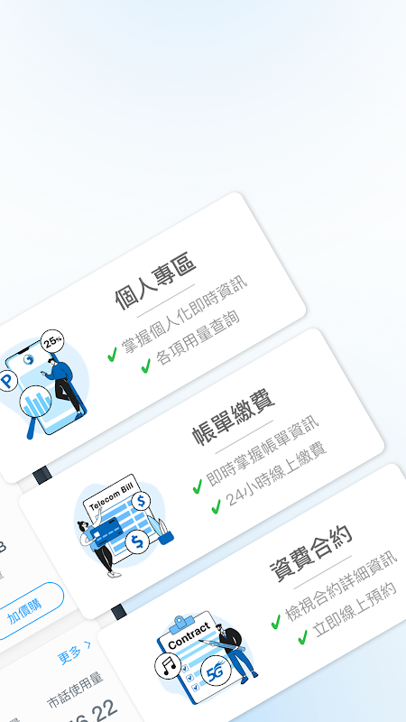 让您快速查询Hami Point、行动上网用量、帐单、线上缴费。登入简单,支援指纹/脸部辨识安全认证,还可随时申请流量加购、国际漫游及预付卡储值,让生活更便利。