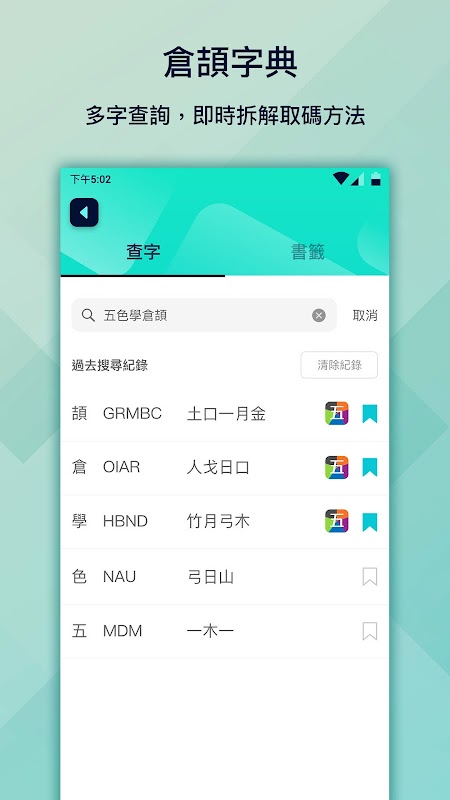 • 中等的 500 字则以 4 码为主,让你学识仓颉的拆码原理;困难的 500 字则可以让用家掌握仓颉的拆码技巧,令你成为仓颉达人!