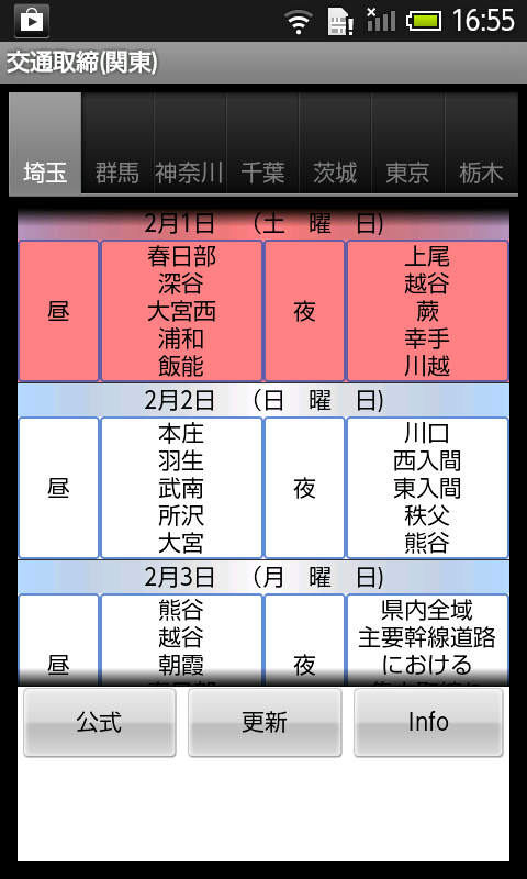 関東エリア(埼玉県、神奈川県、千葉県、東京都、栃木県)の公開交通取締情報を確認するアプリです。