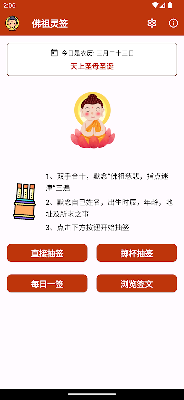 👉 提供直接抽签、掷筊抽签、每日一签、签文浏览的功能。准确、简单、易用。