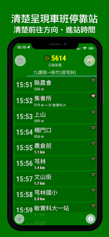这个 app 只要开启后,就根据定位帮你过滤出附近站牌,以及提供相关公车预计到站的时间,方便您在短时间内确定要坐的哪一班公车