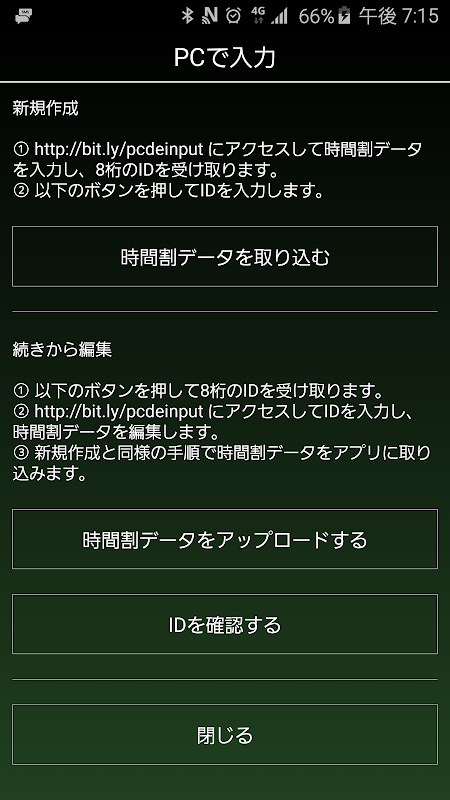 您可以轻松地将从朋友共享的时间表数据和在PC上输入的时间表数据导入应用程序。