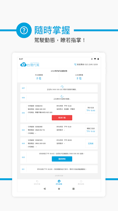最便利的 APP 软体,最新的 GPS 系统,提供完整行驶路径图,更能确保服务品质!