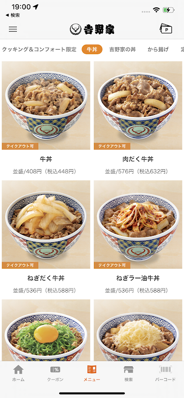 浏览吉野家提供的菜单。