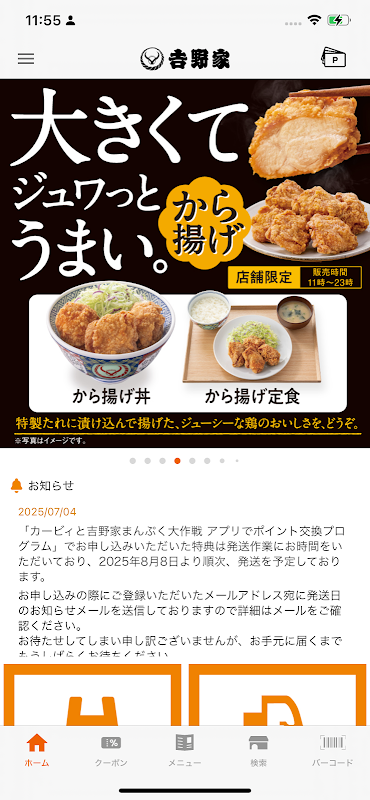 使用吉野家官方应用程序获取优惠券和活动信息!