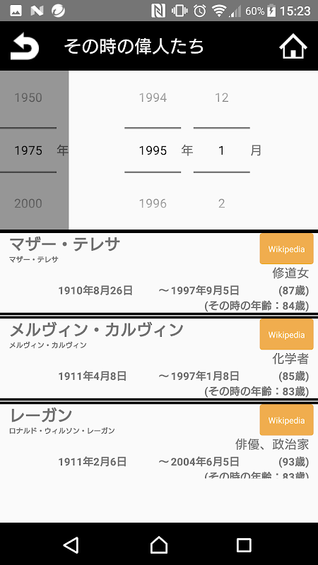 在年/月指定模式下,您还可以看到当时还活着的伟人的年龄。