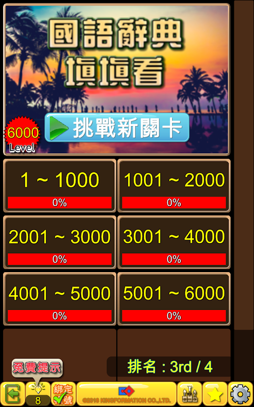 准备好了吗?来接受‘国语辞典-填填看’的挑战,超过一万关的试炼,证明您本身即是一部活的《国语辞典大师》。