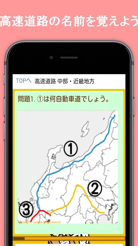 在初中学生学习应用程序是涉及到社会的地理问题的集合中的免费应用程序1的教训。让我们记住天空和陆地的高速交通网络地图一个日本。