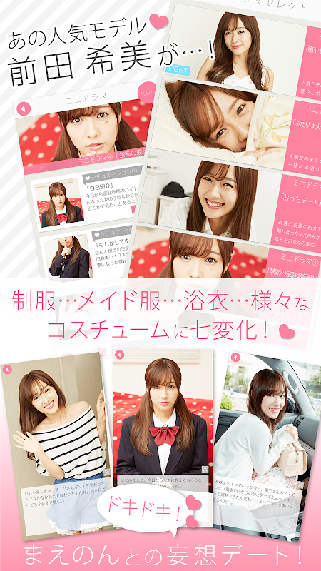“〜妄想她希 - 前田”是言情剧的应用程序,可以在各种与“前田希”相结合的情况是积极作为一个受欢迎的模型女演员享受伪爱情。