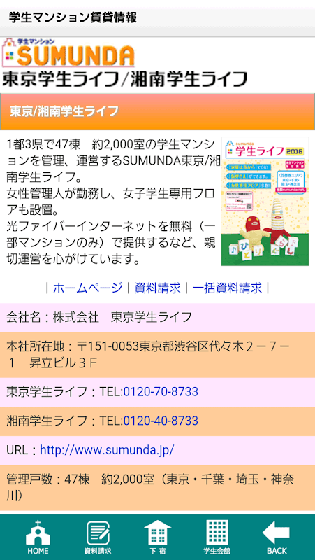 学生マンションの比較&一括資料請求「学生マンション賃貸情報」 1.0