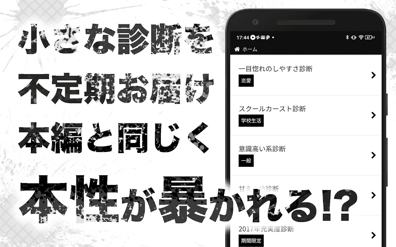 这是一款诊断游戏应用程序,仅通过回答随机提问和心理测验即可测量您的S度(^^♪