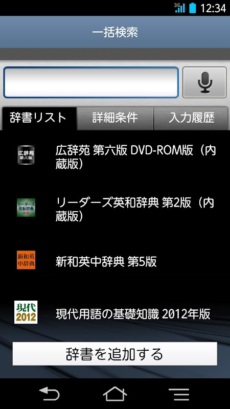 PCを使って辞書コンテンツをダウンロードする場合は、PCから以下のキーワードをWebで検索してください。