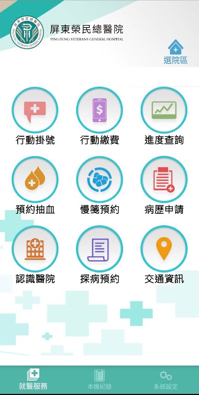 屏东荣民总医院行动服务APP,提供民众更友善的行动医疗服务,透过行动装置,让您在家即可预先完成挂号、慢笺领药、预约抽血等服务。