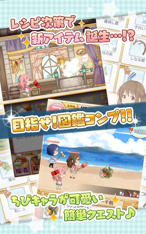 从=ω=)「んじゃ、お次は【調合】だね。集めてきた素材を魔法の釜に放り込んでぐーるぐる!あれまー、不思議!ステキな商品が出来ちゃった!ふむふむ…儲けるためには、新しいレシピの開発も大事なんですなぁ。」