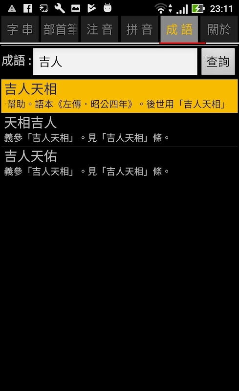 就会将"发音是ㄩㄣˋ" 的国字列出, 之后按下查询键, 就可以查到