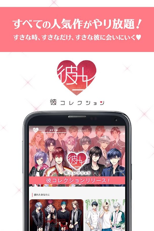 「彼コレクション」は、様々な女性向け恋愛ゲームのストーリーが好きなだけ楽しめる読み放題アプリです。