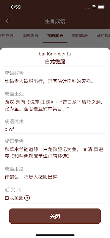 该成语App包含多种成语学习模块,如成语接龙、成语故事、生肖成语、四季成语、动物成语、数字成语等。