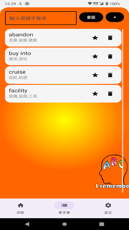 如果您最近特别想背一些很常忘的单字,可以将这些单字加入书签内特别训练。