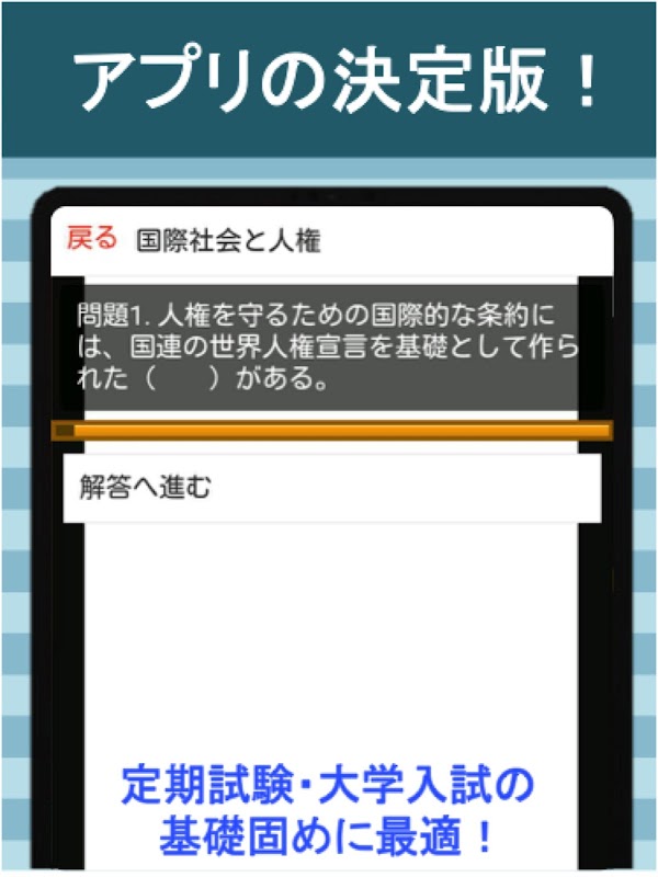 学校の定期テストや大学入試 センター試験ではほぼこのアプリにある知識問題と同じような内容が出題されるはずです。