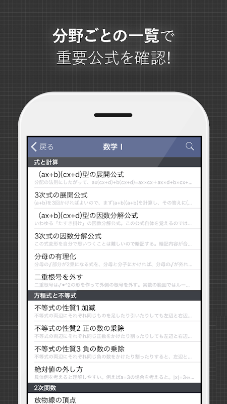 APKPure 使用签名验证功能,确保为您提供无病毒的 数学公式集(中学数学・高校数学の公式解説集) APK 下载。
