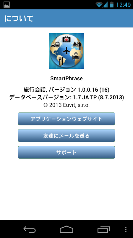 この旅行会話の完全版は22カ国言語の旅先で最も使われるフレーズで構成されています。これ以上の旅行ガイドや案内書要らず。お選びいただいた言語をご購入になるか、お買い得な完全版をご購入になれば、フレーズをダウンロードできます。常にインターネットにつなげる必要はありませんーあなたはいつでも自由にこのフレーズをご利用できます。旅行会話の内容はそれぞれの言語が使われる国の特徴によって異なる内容をが含まれています。(地理、固有の料理法、文化、等)