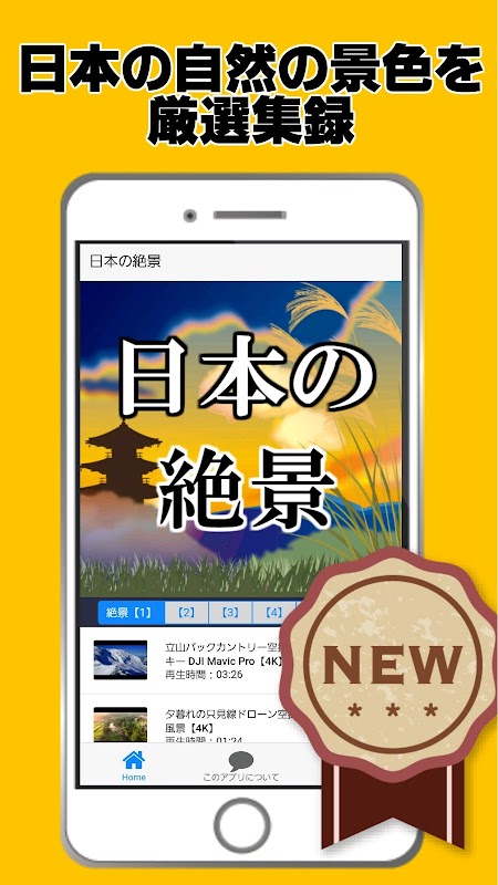 【無料】日本の美しい自然(海・山・川・滝等)を厳選して集めた映像アプリです。また歴史的建造物や京都の神社お寺名所も集録。ドローンを使った空撮もあり楽しめます。