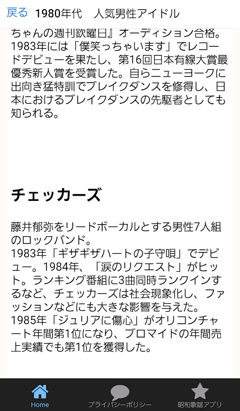 懐かしい昭和の歌手やアイドル図鑑アプリです。70年代80年代90年代のカラオケ人気歌手など。平成の人物も一部集録。高齢者向けアプリです。