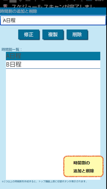 如果有多个时间表,如A时间表和B时间表,请从菜单中选择“添加时间表和删除”。