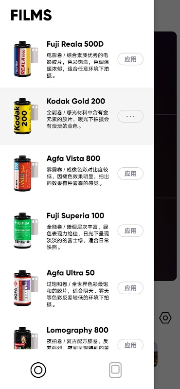 好莱坞电影卷:最受好莱坞导演喜爱的专业电影胶片,如克里斯托弗·诺兰拍摄的《星际穿越》、莱昂纳多·迪卡普里奥出演的《华尔街之狼》等诸多好莱坞大片,色彩宽容度极高,不知道用什么胶卷的时候可以装上它随便拍就是了。