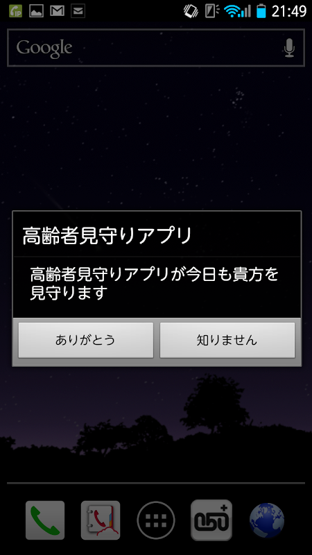 【高齢者見守りアプリ】がポップアップされる。