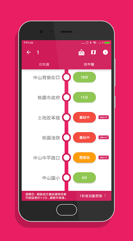 桃园、中坜公车即时动态快速查询