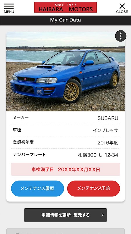 如果您到店一次就登记过汽车,在应用程序中输入必要的信息,您就可以在应用程序上查看您爱车的车辆年检时间!