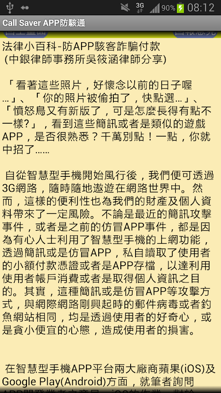 *** 為了讓民眾更了解相關手機駭客詐騙資訊,亦提供中銀律師事務所分享的專文、以及最新APP駭客詐騙手法資訊,多一點了解,提昇保護能力,降低被駭風險。