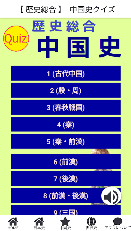 这个应用程序是一个关于日本历史、中国历史、世界历史等“历史综合”的问答应用。