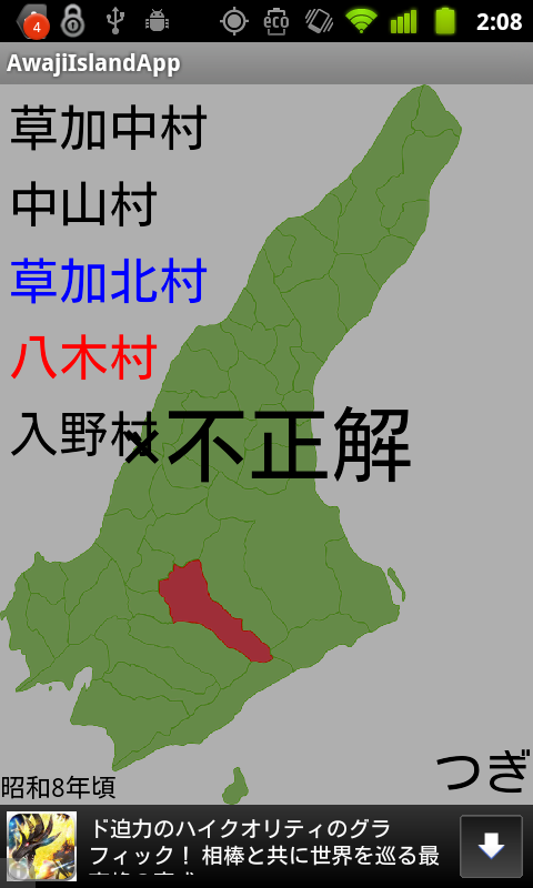 明治初期から現在までの淡路島の市町村名を5択で選ぶアプリです。
