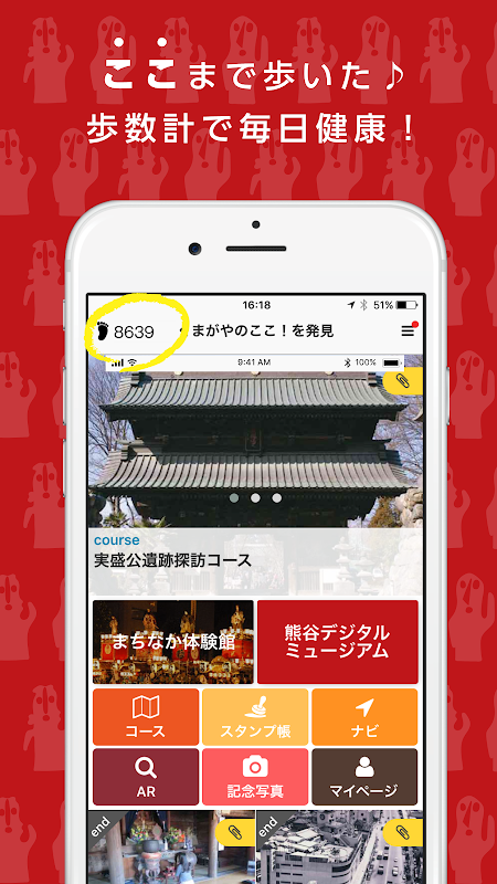 请使用此应用程序探索熊谷市并发现新的景点。