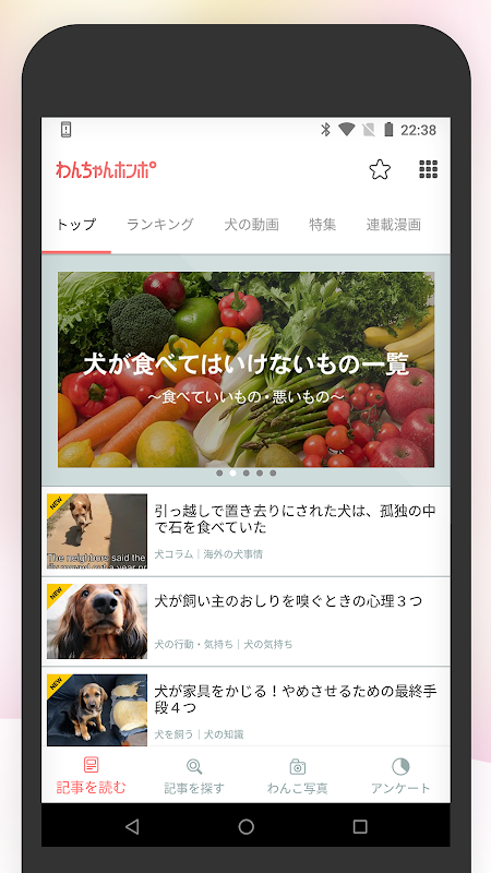 我的狗困扰!我想知道小狗的感情!学科,疾病和健康,食谱,时尚,保险等会发现很多有用的信息。小狗是该庆幸的应用程序。