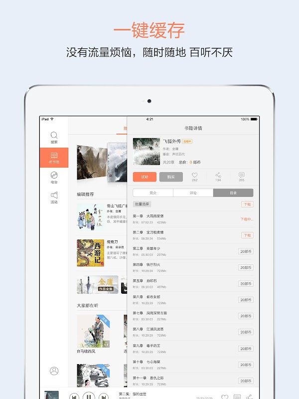 听武侠、玩评书、战悬疑、品名著、学外语、叹方言,精彩内容等妳来探索!